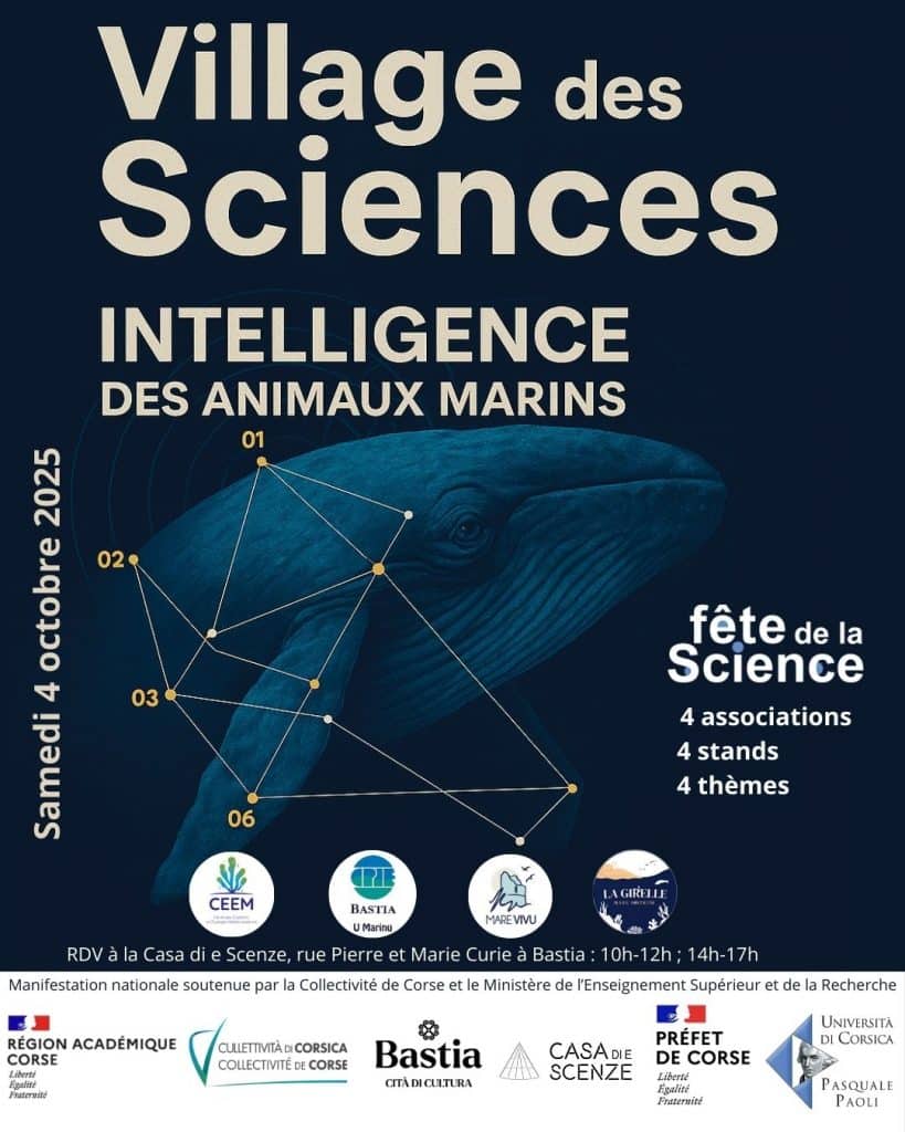 Samedi 04 octobre, de 10h à 12h et de 14h à 17h, pour le village des sciences sur l’intelligence des animaux marins à la Casa di e Scenze.